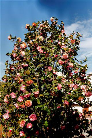 It’s certainly a camellia garden with a “differentiated” flowering since the plants have different ages and, evidently, the more or less sun exposure causes their process.