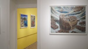 Vicente Hernández, artista cubano originario di Batabanó, presenta un ciclo di opere dal titolo evocativo: “Argonauta sulla costa delle Sirene”. Si tratta di un omaggio pittorico all’Italia e alle sue icone: Roma, Venezia, Capri e Positano. Le sue tele evocano città volanti, monumenti simbolici e atmosfere sognanti.