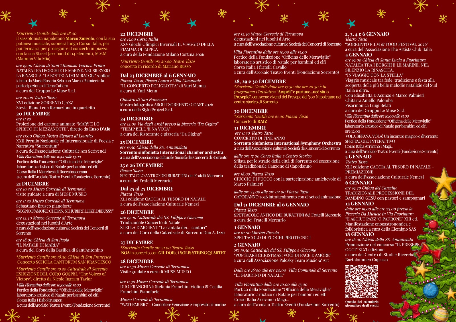 III edizione “SORRENTO CHRISTMAS” a cura dell’Associazione D2 Eventi – Zona pedonale corso Italia dal campanile a Piazza Veniero