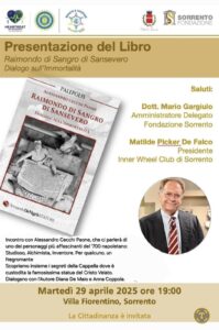 Fondazione Sorrento è lieta di ospitare il prossimo 29 Aprile 2025 alle 19:00 – nelle sale di Villa Fiorentino – la presentazione del Libro “Raimondo di Sangro di Sansevero – Dialogo sull’immortalità” di Alessandro Cecchi Paone.