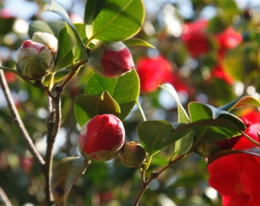 E’ certamente un cameleto dalla fioritura “differenziata”, dal momento che le piante hanno età diverse e, chiaramente, l’esposizione solare più o meno diretta ne determina il processo.